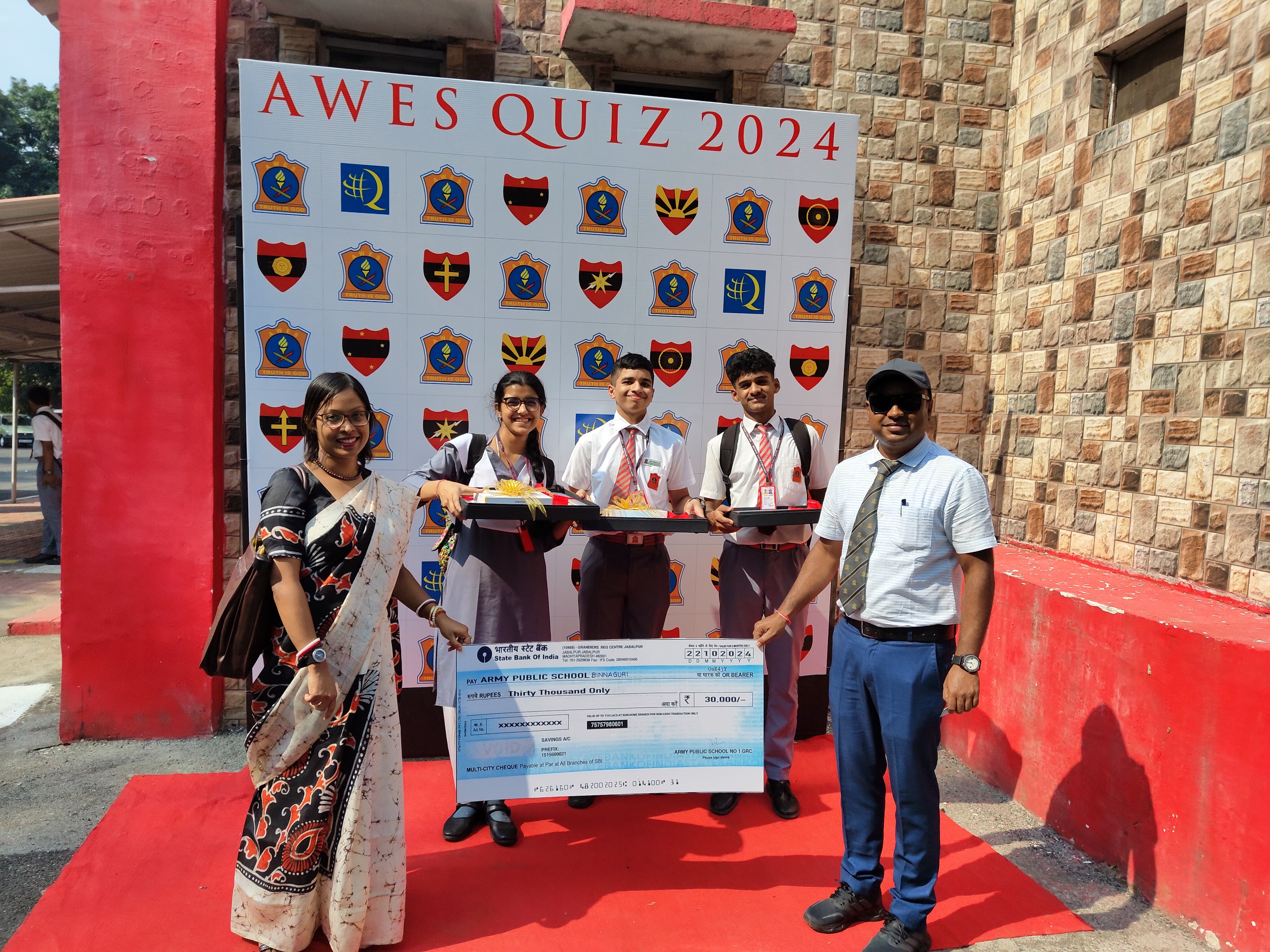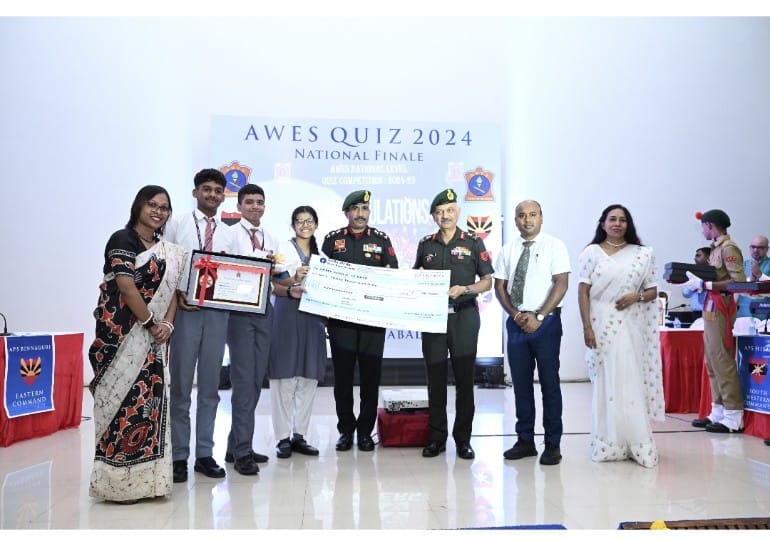 - Army Public School Binnaguri emerged as Champions at the AWES Quiz National Finale held at APS Jabalpur on 5 October 2024,by securing an outstanding score of 700 points ,competing against top performing schools from across the country. The team members, Ansh Mishra (IX B), Riddhima Majawadia (X B) and Anant Agarwal (XII-Humanities), displayed remarkable depth of knowledge, covering a vast spectrum of subjects from history to science, sports, and current events as they tackled questions with impressive speed and accuracy, Their exceptional performance allowed them to maintain commanding lead throughout the competition finishing at top position in the finale. Mentor teachers Dr.Alaska Bhadra (PGT Geography) accompanied by Mr.Shubendu Mazumbder (PRT). Indeed a moment of immense pride for the school.
