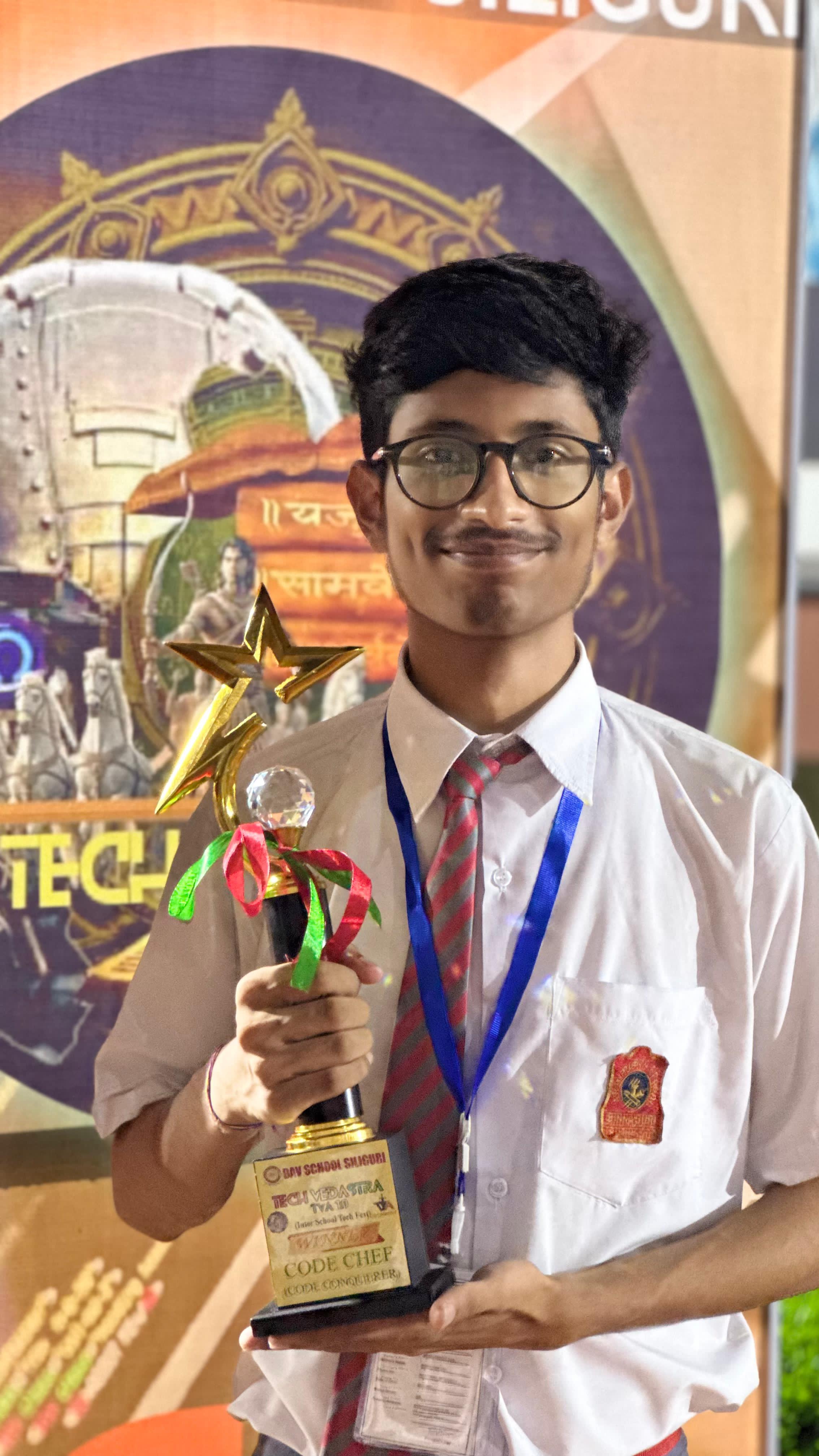- The Mega Tech Fest 'Tech Vedastra 1.0' was organized by DAV School, Fulbari on 9 August 2025. Over 500 students from across north Bengal, competing in gaming, coding, quiz, photography, videography, and tech talks, assembled for the event. A 26-member team from APS Binnaguri participated in the mega event and achieved a remarkable feat. Pranay Sah of XII Science emerged as the winner in the ‘Code Chef’ coding event, impressing judges with his exceptional problem-solving abilities and competitive programming skills. Overall, the fest provided young participants with a platform to explore and showcase their talent.