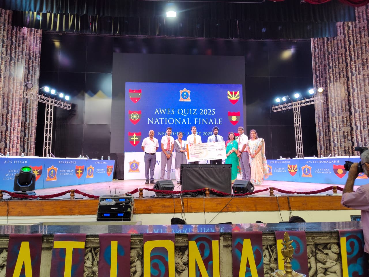 - The AWES National Level Quiz Finale 2025, held at APS Dhaula Kuan, on 3 September 2025 featured top-performing teams from six commands: APS BD Bari (Western Command), APS Kanpur (Northern Command), APS Binnaguri (Eastern Command), APS Hisar (South Western Command), APS Bhopal (Southern Command), and APS Pithoragarh (Central Command). Organized by the Army Welfare Education Society (AWES), the event was masterfully conducted by renowned quizmaster Mr. Adittya Nath Mubayi. APS Hisar clinched the top spot with an outstanding score of 500 points. Nonetheless, APS Binnaguri delivered a commendable performance, and secured the runner-up position with an impressive 400 points. APS Kanpur claimed third place with 375 points, while APS Bhopal and APS Pithoragarh jointly took fourth place with 250 points each. APS BD Bari rounded out the competition in fifth place with 125 points. Another feather in the cap for APS Binnaguri.
